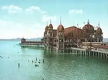 Thousands passed through the Rocky Mountains on the Oregon Trail beginning in the 1840s.[31] The Mormons began settling near the Great Salt Lake in 1847.[32] From 1859 to 1864, gold was discovered in Colorado, Idaho, Montana, and British Columbia, sparking several gold rushes bringing thousands of prospectors and miners to explore every mountain and canyon and to create the Rocky Mountains' first major industry. The Idaho gold rush alone produced more gold than the California and Alaska gold rushes combined and was important in the financing of the Union Army during the American Civil War. The transcontinental railroad was completed in 1869,[33] and Yellowstone National Park was established as the world's first national park in 1872.[34] Meanwhile, a transcontinental railroad in Canada was originally promised in 1871. Though political complications pushed its completion to 1885, the Canadian Pacific Railway eventually followed the Kicking Horse and Rogers Passes to the Pacific Ocean.[35] Canadian railway officials also convinced Parliament to set aside vast areas of the Canadian Rockies as Jasper, Banff, Yoho, and Waterton Lakes National Parks, laying the foundation for a tourism industry which thrives to this day. Glacier National Park (MT) was established with a similar relationship to tourism promotions by the Great Northern Railway.[36] While settlers filled the valleys and mining towns, conservation and preservation ethics began to take hold. U.S. President Harrison established several forest reserves in the Rocky Mountains in 1891–1892. In 1905, U.S. President Theodore Roosevelt extended the Medicine Bow Forest Reserve to include the area now managed as Rocky Mountain National Park. Economic development began to center on mining, forestry, agriculture, and recreation, as well as on the service industries that support them. Tents and camps became ranches and farms, forts and train stations became towns, and some towns became cities.[9]