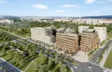 Rohan City is the name of a planned neighborhood on the former Rohan Island located at the borders of the Prague neighborhoods of Karlín, Invalidovna, and Libeň. The project will be an extensive revitalization effort including apartment buildings and administrative complexes, which will also contain spaces for public facilities and services.[1] The planned location also includes space for a school building. The element uniting the project will be a kilometer-long promenade on the right bank of the Vltava planned along the route of the current A2 riverside bicycle path. This promenade will create a fluid transition between urban structure and the green recreational area of an extensive park that will be built along the bank of the Vltava River.[1]