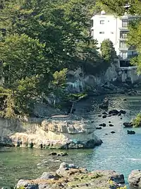 Rokkakudō (六角堂), was a hexagonal wooden retreat overlooking the sea along the Izura coast in Kitaibaraki, Ibaraki Prefecture, Japan.[1] Dating to 1905, it was part of the Izura Institute of Arts & Culture, Ibaraki University.[2][3] Constructed in the sukiya-zukuri style, single-storey, with a tiled roof, an area of nine square metres, and painted red, it was designed by scholar and critic Okakura Tenshin who spent time there with painter Yokoyama Taikan. In 2003 it was added to the Tangible Cultural Properties Register.[1][4] On 11 March 2011 it was swept off to sea in the tsunami.[5][6] It was rebuilt and opened to the public in April 2012.[7]