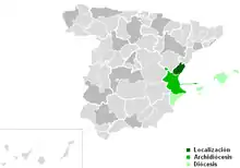 Map of the Roman Catholic Diocese of Segorbe-Castellón (dark green)
