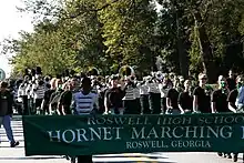 The Roswell High School band department contains the marching band, wind ensemble, symphonic band, pep band, jazz band, and percussion ensemble.[51] The marching band performs for all varsity football games and has competitions throughout the fall, as well as parade appearances. The marching band competes in Class AAA and in 2008 placed third overall in the Georgia Invitational Band Championship.[52] In 2009 the wind ensemble, which was one of only three selected, took part in the Honor Bands of Georgia program hosted at Columbus State University in Columbus, Georgia. The program is an educational opportunity for the bands participating and is meant to further music education in the state.[53]