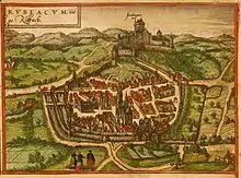 In the 5th century, the walled village (oppidum) beneath the stronghold of Isenburg was a residence of the Merovingian kings. According to pious legend[5] recorded in the chronicle of Ebersmunster, the son of King Dagobert II gave the city to Arbogast, bishop of Strasbourg, in the 7th century, after the bishop had re-awakened his son Sigebert from death in a hunting incident.[6] More certainly the fief was one of the most ancient belonging to Strasbourg.[7] It finally became the main town of an episocopal fief, which also included Eguisheim. The city quickly developed and a wall was built around it.