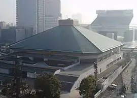 Ryōgoku Kokugikan (Japanese: 両国国技館, lit. "Ryōgoku National Sports Hall"), also known as Ryōgoku Sumo Hall or Kokugikan Arena, is the name bestowed to two different indoor sporting arenas located in Tokyo. The first Ryōgoku Kokugikan opened its doors in 1909 and was located on the lands of the Ekōin temple in Ryōgoku, Tokyo. Although no sumo bouts were held after 1945, following the capitulation of Japan and the requisition of the building by the occupying forces, the building itself remained active until 1983, being notably used by the Nihon University.[1909 1] The second Ryōgoku Kokugikan is currently located in the Yokoami neighborhood of Sumida next to the Edo-Tokyo Museum. It opened in 1985, following the closure of the Kuramae Kokugikan, and is still in use today.
