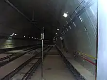 The trains have emergency exits on the front and back of the compositions,[3] where the front mask bends down, opening the way and creating a ramp for passagers to disembark and walk on the tracks until the next station. Also because of that, the space between tracks was unobstructed, to avoid accidents in case of evacuation. Besides that, there are side walkways on the tunnels between stations, just like other metro lines. Therefore, so the passengers in B cars can leave, they use the free gangway. In the A cars, there are 2 windows where passengers can have a view from the tracks, an angle not available in other lines of the system, with the exception of Line 15-Silver.