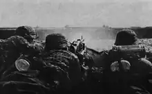 In July 1944, together with six German infantry divisions, the Galicia Division was responsible for holding a frontage of approximately 80 kilometres (50 mi), near the town of Brody. When the Soviets launched their offensive, the division was initially in reserve.[65] Deployed at Brody were the division's 29th, 30th, 31st Waffen-Grenadier regiments, a fusilier and an engineering battalion, along with its artillery regiment. The Field Replacement Battalion was deployed fifteen miles (24 kilometres) behind the other units.[62][66]