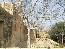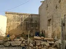 The redoubt was built on the site of a cemetery.[3] It incorporated the Chapel of St. George, which had been built in 1683 on the site of an earlier chapel.[4] Apart from being the only Hospitaller redoubt incorporating a church, St. George Redoubt is also unusual since it has a semi-circular shape, while most redoubts were pentagonal.[5] The semi-circular platform is ringed by a low parapet. The walls linking the redoubt to the church are pierced by musketry loopholes, while the doorway had a ditch and a drawbridge.