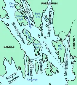 |  Sandøya seen together with other islands outside Porsgrunn | |