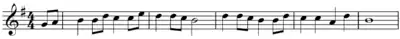 ⓘLikewise, it will connect that G with the D on the first quarter of measure 2 as its fifth. Our ear will establish this connection instinctively, but nonetheless in accordance with the demands of Nature. In an analogous way, it will link that first G with the C and E of the second half of measure 1 and thus form the concept of another triad. For our ear will miss no opportunity to hear such triads, no matter how far in the background of our consciousness this conception may lie hidden and no matter whether in the plan of the composition it is overshadowed by far more obvious and important relationships.[1]