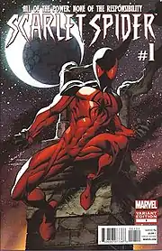 Scarlet Spider is the title of two comic book series published by Marvel Comics about two clones of Spider-Man while they functioned as the then-current version of the Scarlet Spider. The first volume lasted only two issues as a brief temporary replacement of the Spider-Man series and was published in 1995. The second volume started publishing in January 2012 and ended in December 2013 with issue 25 after a total of 26 issues, because there was a special Marvel Point One issue published between issues 12 and 13.[1]