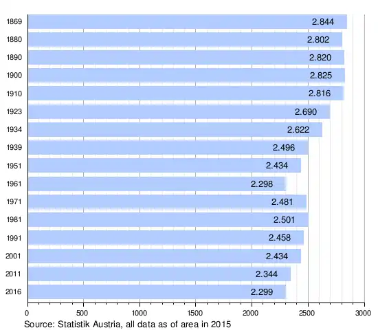- ↑ "Dauersiedlungsraum der Gemeinden Politischen Bezirke und Bundesländer - Gebietsstand 1.1.2018". Statistics Austria. Retrieved 10 March 2019.
