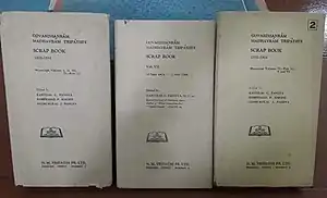 ![]() Volumes of Scrap Book edited by કાન્તિલાલ પંડ્યા (whose name is romanized as Kantilal Pandya), Sanmukhlal Pandya and Ramprasad Bakshi | |