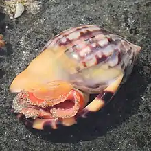 Semicassis labiata (formerly also known as Phalium labiatum) is a species of large predatory sea snail, a marine gastropod mollusc. This species is in the subfamily Cassinae, the "helmet shells" and "bonnet shells", which feed on sea urchins.[2]