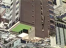 The building had a glass elevator leading to a restaurant at the top, from which Gehr shot the entire film.[7] He began by riding up and down the elevator, making notes and sketches about the angles at which he could position the camera. He filmed between 12:00 p.m. and 1:30 p.m. to minimize reflections on the elevator glass and shadows cast by surrounding buildings. Gehr filmed without asking permission from the hotel, not expecting to need it. After Gehr was asked to leave, he had his friend Adam Hohenberg request permission. The hotel denied their request, primarily because it would interfere with the restaurant's lunchtime rush. Gehr ended up shooting the film discreetly and was kicked out multiple times during production. He shot on 16 mm film with a Bolex camera that had to be hidden under his coat. Because he was unable to set up a tripod, the weight of the handheld Bolex became a major obstacle which prevented Gehr from filming some of the shots he had originally planned.[4][6]