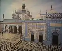 The Talpur dynasty (Sindhi: ٽالپردور) succeeded the Kalhoras in 1783 and four branches of the dynasty were established.[83] One ruled lower Sindh from the city of Hyderabad, another ruled over upper Sindh from the city of Khairpur, a third ruled around the eastern city of Mirpur Khas, and a fourth was based in Tando Muhammad Khan. They were ethnically Baloch,[84] and for most of their rule, they were subordinate to the Durrani Empire and were forced to pay tribute to them.[85][86]