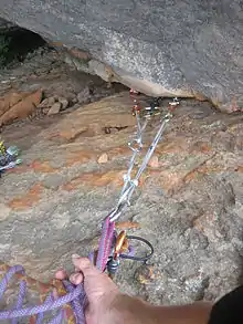 - Hitch around a chock stone or a tree to use as passive protection[2]