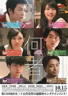 Someone (何者, Nanimono) is a 2016 Japanese drama film based on the novel by the same name by Ryo Asai.[1][2] It was released in Japan by Toho on October 15, 2016.[3]