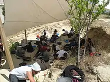 In 1989 a geology student at the Complutense University of Madrid, Francisco Hernández Arteaga, was waiting for his girlfriend next to the Faculty of Political Science at the Somosaguas campus when he discovered skeletal remains on the ground.[4][5][2] He did not report the discovery until 1996.[2] Once the discovery was reported, members of the Paleobiology Department of the National Museum of Natural Sciences carried out prospections in the area, the results of which were included in a report presented to the Ministry of Culture of the Community of Madrid, and the site was included in the paleontological chart.[3] The first paleontological excavation took place in 1998, in which Professor Nieves López led a team of students from the Faculty of Geological Sciences of Madrid, with the financial support of the Rector's Office of the Complutense University, and with the collaboration of the National Museum of Natural Sciences.[2]