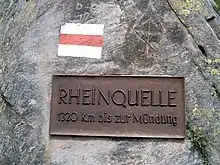 Near the "source of the Rhine" at Lake Toma, there is a well-known sign with the erroneous information, "1320 km to the mouth"; it is only about 1230 km. The number of 1320 km is widespread. It is unclear whether it refers to the river length as measured from Lake Toma. It may be the result of transposing digits.