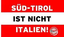 In mid 2007, the party presented a provocative poster campaign with the slogan Süd-Tirol ist nicht Italien! ("South Tyrol is not Italy") and the Austrian flag as background.[7] A sign with the same content was also set up at the Brenner Pass border, in June 2008.[8]