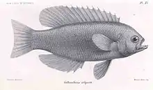 - ↑ "Series EUPERCARIA (Incertae sedis): Families CALLANTHIIDAE, CENTROGENYIDAE, DINOPERCIDAE, EMMELICHTHYIDAE, MALACANTHIDAE, MONODACTYLIDAE, MORONIDAE, PARASCORPIDIDAE, SCIAENIDAE and SILLAGINIDAE". The ETYFish Project Fish Name Etymology Database. Christopher Scharpf. 9 March 2023. Retrieved 15 October 2023.