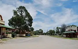 |  The main street of Springhurst, 2009. The post office is on the left, the Carriers Arms Hotel on the right | |