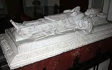It was Bishop Grafton's request that he be buried in the cathedral, so in the year following his death on August 30, 1912, the area known as the Chapel of St. Michael the Archangel was redone. The burial site features a white marble and red porphyry sarcophagus, supporting a life-size figure of the bishop. The chapel became the permanent site of his burial on August 30, 1913.