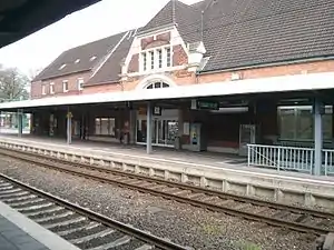 Stade (German: Bahnhof or Haltestelle Stade) is a railway station which opened in 1881 [5] and is located in the town of Stade, Lower Saxony, Germany. Stade station is the terminus for the rapid transit trains of Hamburg S-Bahn line S5 from Elbgaustraße station via central station, and a through station for the Metronom line from Hamburg to Cuxhaven. For the Metronom, Stade is the last station within the Hamburger Verkehrsverbund (HVV).