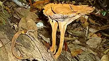 Stiptophyllum is a fungal genus in the family Polyporaceae. It is a monotypic genus, containing the single species Stiptophyllum erubescens. The genus was circumscribed by Norwegian mycologist Leif Ryvarden in 1973.[2] Stiptophyllum erubescens is found in tropical South America and causes brown rot of wood. Its fruit body has a stipe, which distinguishes it from the similar genus Gloeophyllum.[3]