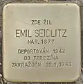 HERE LIVED EMIL SEIDLITZ BORN 1877 DEPORTED 1942 TO AUSCHWITZ MURDERED 22.1.1943 |