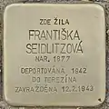 HERE LIVED FRANTIŠKA SEIDLITZOVÁ BORN 1877 DEPORTED 1942 TO AUSCHWITZ MURDERED 12.2.1943 |