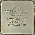 HERE LIVED PAVEL STRÁNSKÝ BORN 1887 DEPORTED 1942 TO AUSCHWITZ MURDERED 1944 |