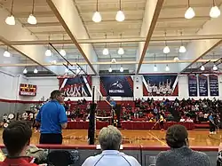 The Pritchard Gymnasium is an indoor multi-purpose gymnasium that is currently the site of home games for Stony Brook's volleyball team. It opened in 1967 and currently seats 1,700 with 20,000 square feet of space.[82] From 1967 to 1990, it was the home venue for Stony Brook's men's and women's basketball teams until the opening of the Stony Brook University Arena.[71] During the renovation of the arena, Stony Brook played its home games at Pritchard Gymnasium again from 2008 to 2014.[83] Pritchard Gymnasium was known for giving Stony Brook a large home-field advantage, with its men's basketball team going 37–3 at home in Pritchard from 2011 to 2014.[84] It underwent a $1.5 million renovation in 2008 to upgrade the seating, add a new scoreboard and refinish the hardwood floor. Pritchard Gymnasium was the site of many historical concerts at Stony Brook University, with musicians and bands such as Jimi Hendrix, The Clash, Siouxsie and the Banshees, Ramones, Red Hot Chili Peppers and The Notorious B.I.G. playing shows in the venue.[85]