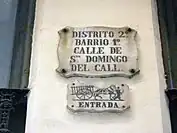 Some streets also used to be named for the presence of singular buildings (Palace, Cathedral) or various establishments (Hospital, New Baths). Tradition has it that the name Carassa Street comes from a carota on the corner between this street and Mirallers Street, which announced a nearby brothel.[39]