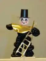 - Although they are made of prunes, these little figures are really decorations, although they can be eaten after Christmas. Pflaumentoffel means plum devil; (also called Feuerrüpel or Fiery Santa), although they are not meant to be devils or Santas, but chimney sweeps, all dressed in black (the prunes) with a top hat and a brush. Until the 20th century, Pflaumentoffel were sold at the Striezelmarkt on trays carried by children trying to earn some Christmas money. The artist Ludwig Richter famously portrayed these Striezelkinder in 1853 in his woodcut "Ausverkauft wegen Geschäftsaufgabe" ("Sold out as giving up business"). In 1910, however, sale by children was banned at the Striezelmarkt.