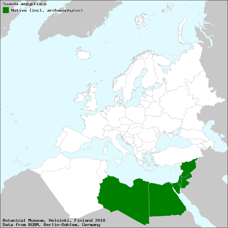 - 1 2 3 4 Uotila, Petteri (2011). "Details for: Suaeda aegyptiaca". EUR+MED flora project. Botanic Garden and Botanical Museum Berlin-Dahlem. Retrieved 20 October 2020.