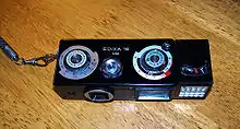 A subminiature camera is a class of camera that is very much smaller than a "miniature camera". The term "miniature camera" was originally used to describe cameras using the 35 mm cine film as negative material for still photography;[1] so cameras that used film smaller than 35mm were referred to as "sub-miniature".[2][3][4]: 11 The smallest of these are often referred to as "ultra-miniature". Lipstick cameras and other small digital cameras are not included, because they don't use film. The smaller subminiature cameras, called ultraminiature cameras, particularly Minox, are associated with spying.