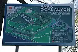 Survivors' Park (Polish: Park Ocalałych) is a park in Łódź commemorating people who survived the Łódź Ghetto, which was created and operated by Nazi Germany during the Holocaust. The park was officially opened on 30 August 2004, the 60th anniversary of the liquidation of the ghetto.[1][2] The park is located in the former territory of Łódź Ghetto, between Wojska Polskiego Street and allotment gardens at Sporna Street in the valley of the Lodz River, in the area adjacent to the borders of the Litzmannstadt Ghetto during the war in Smugowa Street (it was originally to be located at Stalowa Street). The park was designed by Grażyna Ojrzyńska.