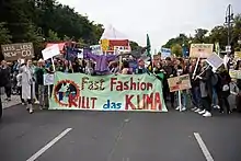 One of the main social issues related to fashion concerns labor. Since the Triangle Shirtwaist Factory fire in 1911, labor rights in the fashion industry has been at the center of this issue.[96] The 2013 Savar building collapse at Rana Plaza, where 1138 people died, put the spotlight once again on the lack of transparency, poor working conditions and hazards in fashion production.[97][98] Attention is increasingly being placed on labour rights violations in other parts of the whole fashion product lifecycle from textile production and processing,[99][100] retail and distribution[101] and modeling[102] to the recycling of textiles.[103] Whilst the majority of fashion and textiles are produced in Asia, Central America, Turkey, North Africa, the Caribbean and Mexico, there is still production across Europe where exploitative working conditions are also found such as in Leicester in the UK Midlands[104] and Central and Eastern Europe.[105]