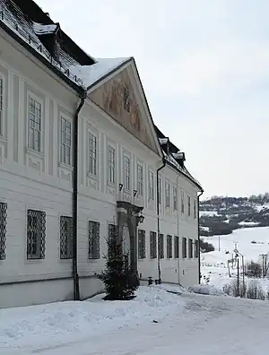 In 1622, the estates of Čabraď castle and Svätý Anton came in the hands of the House of Koháry family, a family who gained its wealth due to its loyalty to the House of Habsburg.[1] They replaced medieval castle by a two-winged manor during the 17th century.[2][1] In 1744, count Andrew Kohary (1694-1757) decided to move his ancestral seat from Čabraď castle to Svätý Anton.[1] As part of this move, he reconstructed the manor into a four-winged manor house with an inner courtyard between 1744 and 1750.[1][2][3] The baroque interior was finished in 1752.[1] He was succeeded by his sons Nikolaus (1721-1769), Ignac (1726-1777), and Jan.[2] The last Kohary to live at Svätý Anton was Ferenc József (17767-1826), who was elevated to prince by Emperor Francis I of Austria in 1815.