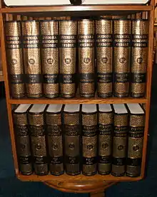 Work on the dictionary started in 1787. The first edition was published in 39 volumes between 1898 and 2023, in Swedish alphabetical order.[1] Updating of the earlier volumes, A to R, is expected to continue until 2030.[1] About 200 hardcopy sets, totalling 33,111 pages, have been printed.[1] The searchable web version has been available since 1997. Citations date back to 1521.[1]