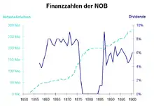 On 2 March 1877, the NOB requested that the Federal Council release it from its obligations to build railways. On 14 February 1878, the Federal Assembly confirmed an agreement that the construction obligations would be maintained, but would be deferred until the completion of the NOB's financial restructuring. The construction period for the so-called "moratorium lines" (Thalwil–Zug, Etzwilen–Schaffhausen, Bülach–Schaffhausen, Koblenz–Stein, Dielsdorf–Niederweningen and the Lake Zurich right bank line) was extended. An agreement with the canton of Glarus set the date for the completion of the Glarus–Linthal line at 1 May 1879.[2] The payment of dividends was suspended from 1880 to 1883. On 25 October 1887, the Federal Council instructed the NOB to begin construction of the Lake Zurich right bank line. The deadlines for the remaining moratorium lines were set on 27 June 1888.