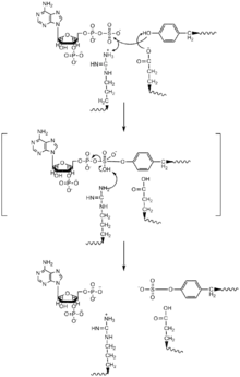 A two-site ping-pong mechanism for TPST and the tyrosine sulfating has been proposed. PAPS enters one site of TPST and the sulfonate group is transferred to a Histidine residue in the enzyme and PAP is released. Then, the target protein and tyrosine bind TPST and the histidine transfers the sulfonate group to the target tyrosine.[11]