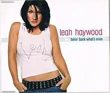 "Takin' Back What's Mine" is the third single released from Australian singer-songwriter Leah Haywood's debut studio album, Leah (2001). It was released nearly six months after her second single, "Crazy", had first charted, while Haywood was still writing and recording for her debut album. The single debuted and peaked at number 18 on the Australian ARIA Singles Chart, staying in the top 50 for eight weeks. A non-album track titled "Anytime" (co-written by Barbara Griffin and Haywood) was included on the single in addition to an alternate recording of an acoustic version of "We Think It's Love".