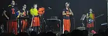 Stevens and band toured dressed in Block I Fighting Illini cheerleading gear