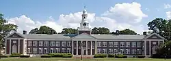 The institution is organized into seven schools, all of which offer bachelor's degree programs and several of which offer master's degree programs.[10] Emphasis is placed on liberal arts education via the college's general education requirements.[11] Much of TCNJ is built in Georgian colonial revival architecture style on a 289-acre (117 ha) tree-lined campus.