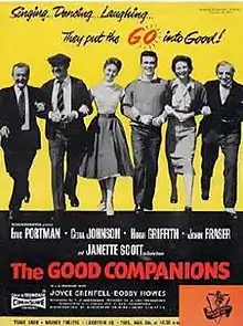 The Good Companions is a 1957 British musical film directed by J. Lee Thompson and starring Eric Portman.[2] It is based on the 1929 novel of the same name by J. B. Priestley and is a remake of the 1933 film version.