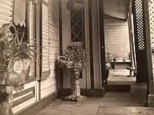 The property was 804 Lydiard Street when it was purchased by Darling, and become number 808 when three houses were built along Lydiard Street from the corner of Gregory Street. An orchard was on the eastern side of the property, but was dilapidated when the Darlings moved in. A Hawthorn hedge ran down the Lydiard Street boundary together with a picket fence, and the laneway access to Gregory Street was lined with Hawthorns. The property boasted huge Cypresses and copses of Laurel trees in very much a non-traditional style, and a tennis court. There was a huge wood heap in the horse paddock to service the house and additional wood was stored on another 32 acre block which Darling owned in nearby Doveton Street North, Ballarat North. At this time there was a horse paddock which ran the length of the property, from Gregory street to Howiitt street, which was later used for his draught horses. These horses worked at the Ballarat Railway yards pulling and moving rolling stock.[54]