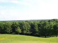 The park consists of a 148 acres (60 ha) plot on high land.[2] Approximately 500,000 acres (200,000 ha) are visible from the overlook point of the plaza.[1]