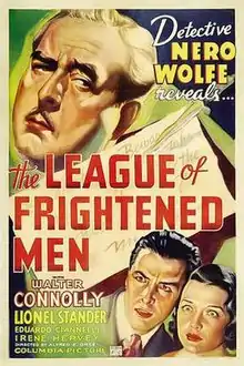 The League of Frightened Men is a 1937 American mystery film based on the 1935 novel of the same name, the second Nero Wolfe novel by Rex Stout. Directed by Alfred E. Green, the Columbia Pictures film stars Walter Connolly as Nero Wolfe, a role played by Edward Arnold in the previous year's Meet Nero Wolfe. The role of Wolfe's assistant Archie Goodwin was reprised by Lionel Stander.