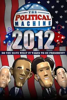The Political Machine 2012 is a government simulation game from Stardock and the third game in The Political Machine series, in which the player leads a campaign to elect the President of the United States.[1] The player accomplishes this goal by traveling from state to state and engaging in a variety of activities to either raise money or raise poll numbers.[2][3]